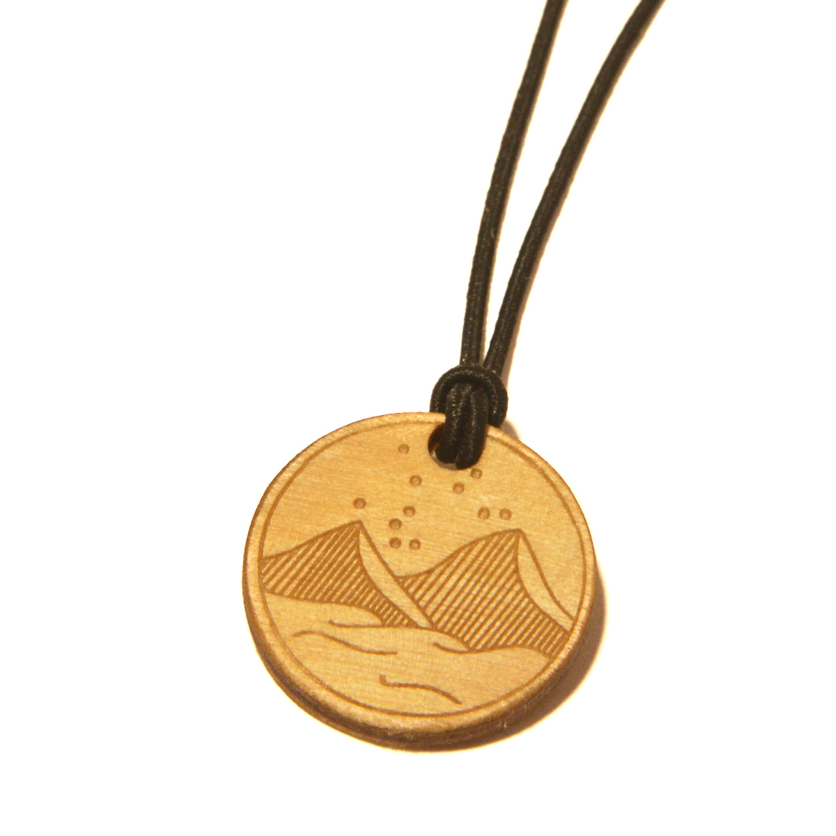Lesena verižica z motivom gor in ozvezdjem horoskopa.